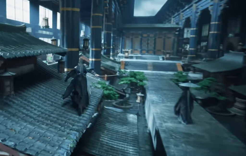 Looking closely, several black shadows crept over the rooftops, knife-wielding hands pressed tight to the moss, waiting for action.