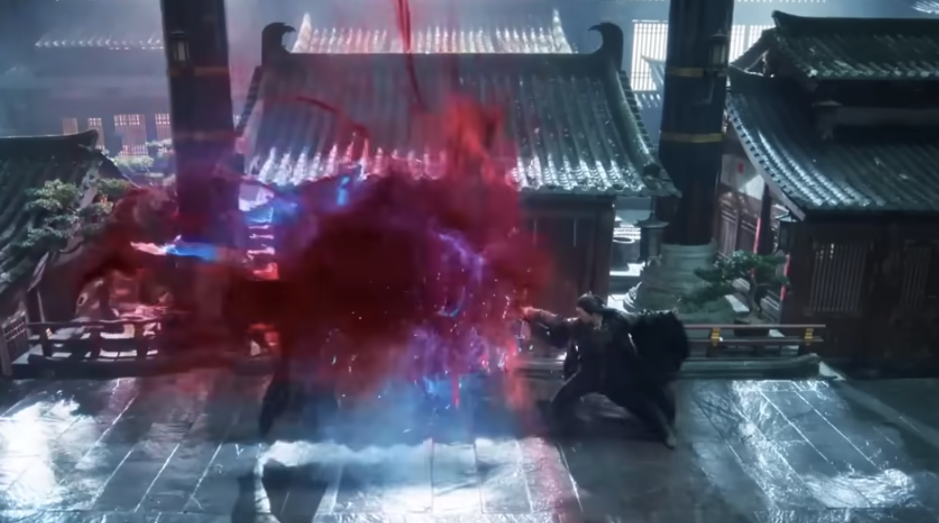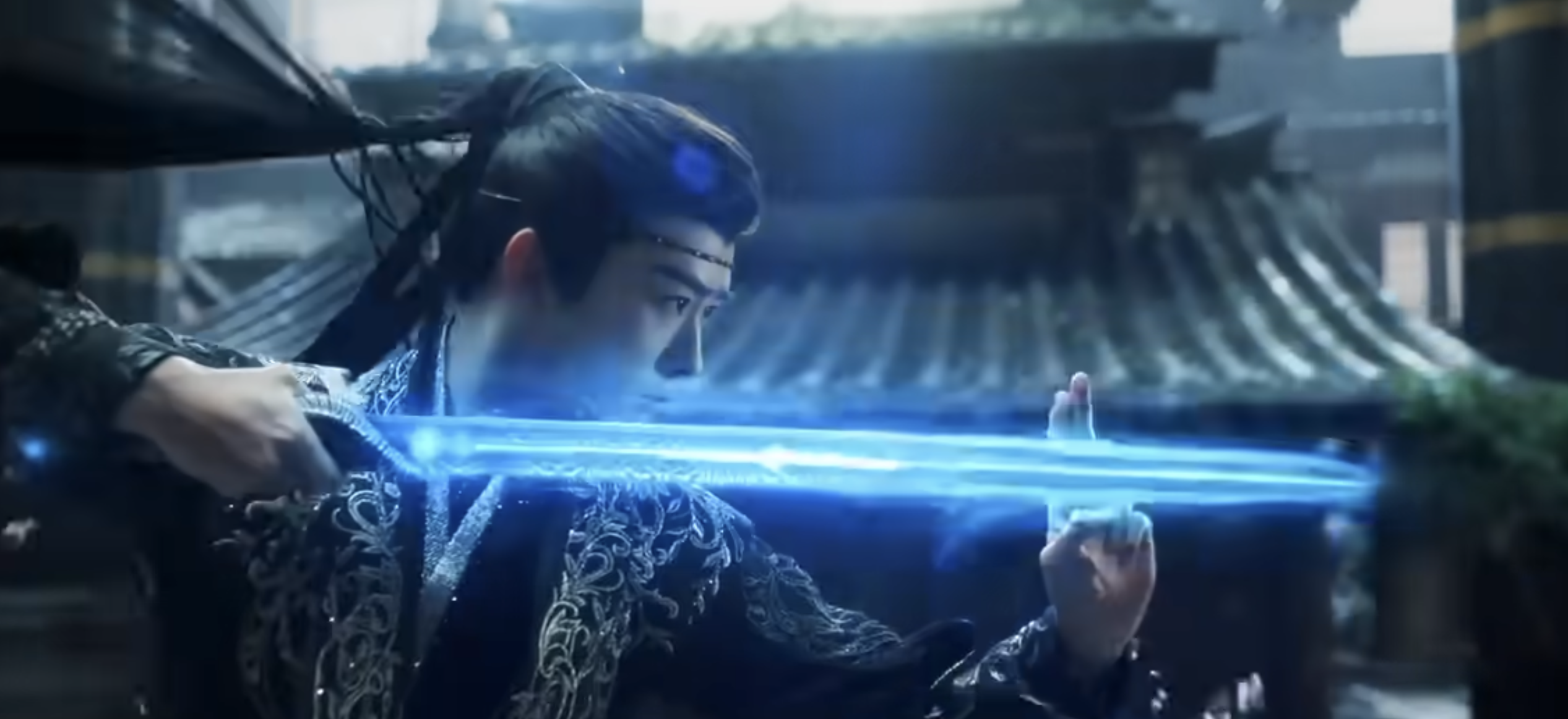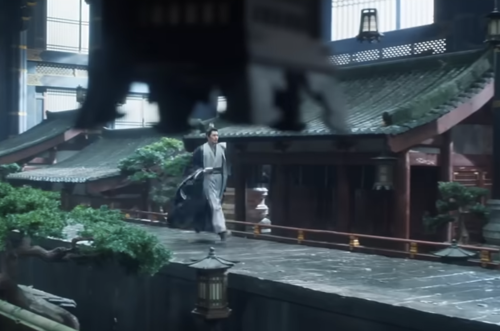 Zhuo Yichen lifted his left arm. A mass of white light formed a shield. The flying tiles struck only the light and shattered on the ground in a messy heap. He then pushed off with one foot, lifting to the air in a leap at Zhao Yuanzhou, bearing down menacingly. His clenched his empty left hand and the sword that had been hidden in the umbrella flew back into his grasp. The sword blade stirred up a billowing, turbulent cyclone of air and in the blink of an eye, Zhou Yichen stood before Zhao Yuanzhou.